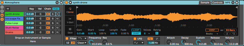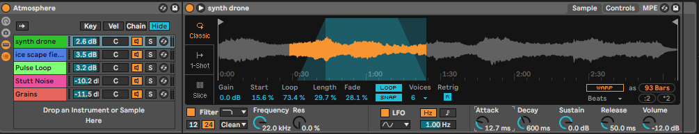 Step 4: Consider Timing and Repetition: Think about the timing and repetition of each atmosphere or drone. Some might play continuously, providing a constant texture, while others might evolve slowly over time, or only occur at specific moments for emphasis. You can use looping an volume envelopes.