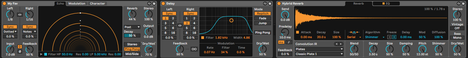 By carefully manipulating these parameters, you can use delay to transform a simple atmospheric sound into a complex, rhythmic element that adds depth, interest, and energy to your track. This technique can be particularly effective in peak-time techno, where the contrast between the relentless rhythms and the intricate, echoing atmospherics can create a powerful sense of movement and intensity.