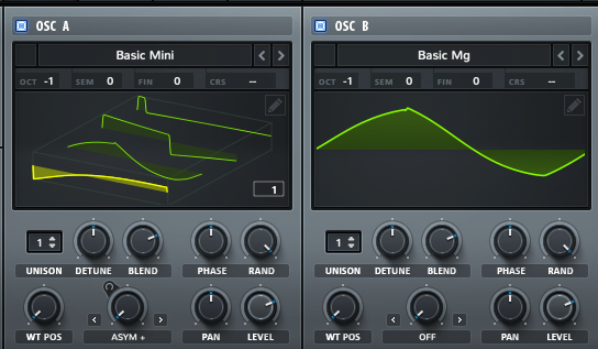 Oscillator 1 is where the magic begins. Set to the "Basic Mini" preset, it channels the nostalgic vibes of vintage analog synths. When morphed into a saw waveform, it exudes a rich, resonant tone, perfect for a dominant presence in any mix.